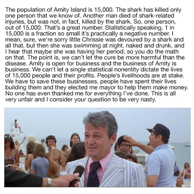 Boris Johnson once gave a speech in which he said the mayor was the hero in Jaws and we needed more politicians like him. Seems he got his wish.