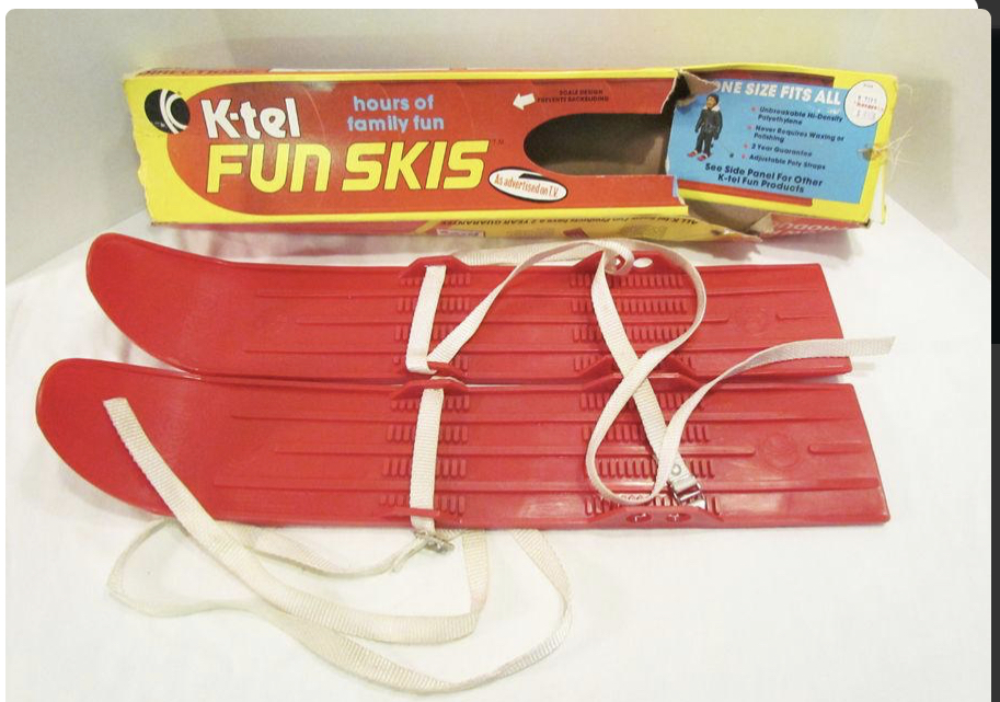 I had the same skis at about age 8 or so. Strapped them on to go down our snowed-over sloped gravel driveway, after about 10 feet I caught one of the tips, slammed face-first into frozen ground, cried, took them off, and threw them in our burn barrel.